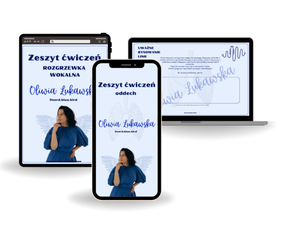 W ramach regularnej współpracy otrzymasz również „Zeszyt ćwiczeń” dzięki któremu, usystematyzujesz swoją wiedzę i otrzymasz wskazówki do pracy pomiędzy naszymi spotkaniami, jak poza treningiem wokalnym możesz rozwijać swój głos – oraz rurkę, która przyda nam się do pracy z Twoim głosem.